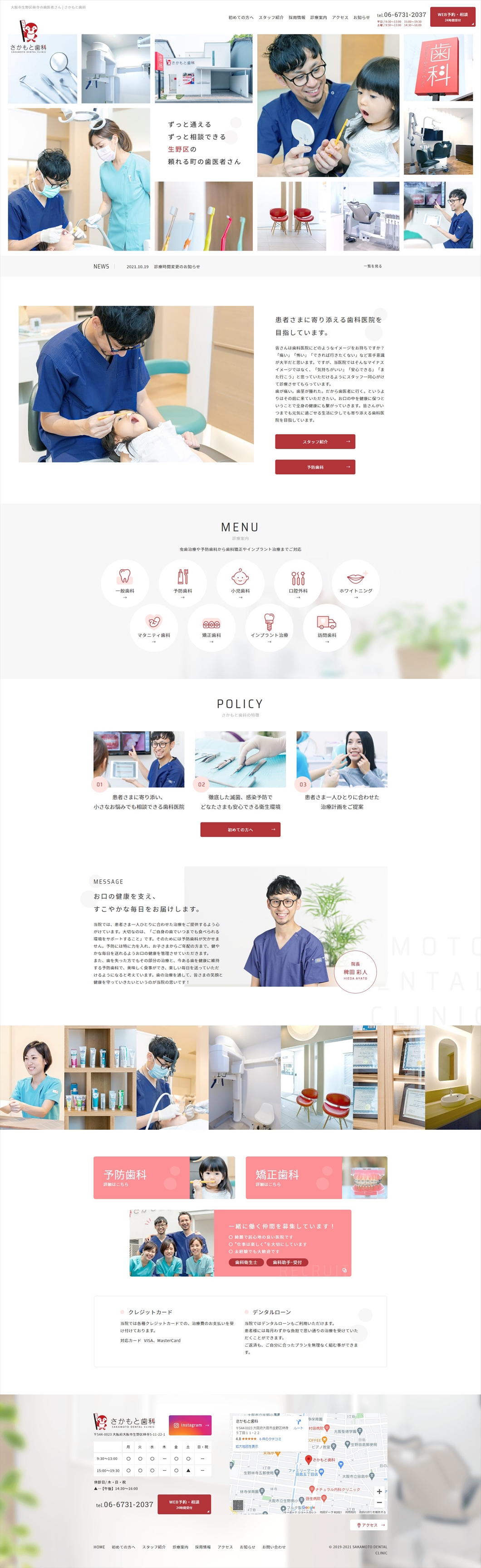 DESCRIPTION|大阪市生野区林寺の「さかもと歯科」では、JR関西本線・東部市場前駅から徒歩15分の場所にある歯科医院です。平日は19時まで診療していますので、学校やお仕事の帰りに気軽にお立ち寄りください。また、土曜日も17時まで診療しており、週中なかなか時間の取れない方にご利用いただいています。 当院では、予防歯科や一般診療からインプラント、矯正と幅広い対応が可能です。複数の歯科医師が在籍し、十分な設備も備え、患者さまに不安なく治療を任せていただけるような環境を整えています。お口に痛みや不安を抱える方はもちろん、予防のためにもぜひ当院をご利用ください。