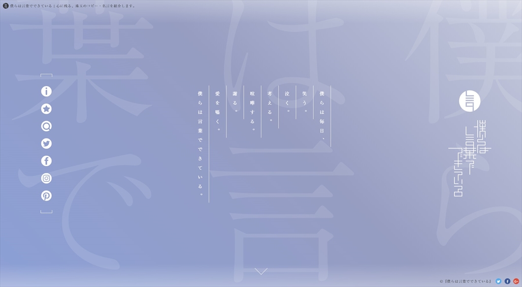 DESCRIPTION|心に残る、珠玉のコピー・名言を紹介します。僕らは毎日、笑う。泣く。考える。喧嘩する。謝る。愛を囁く。僕らは言葉でできている。