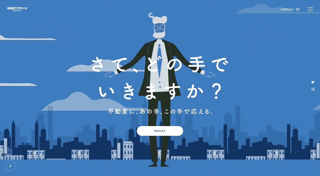賃貸・不動産/ポータル・メディアサイト/クール・シャープ/ポップ/イラスト/ブルー/ホワイト/CMS/アジア