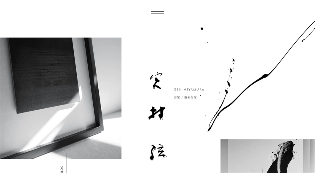 DESCRIPTION|宮村弦は墨象作家として作品制作を中心に、アートワークを展開させたデザインワーク、展覧会の企画、企業とのコラボなど、多面的な創作活動を進めている。
