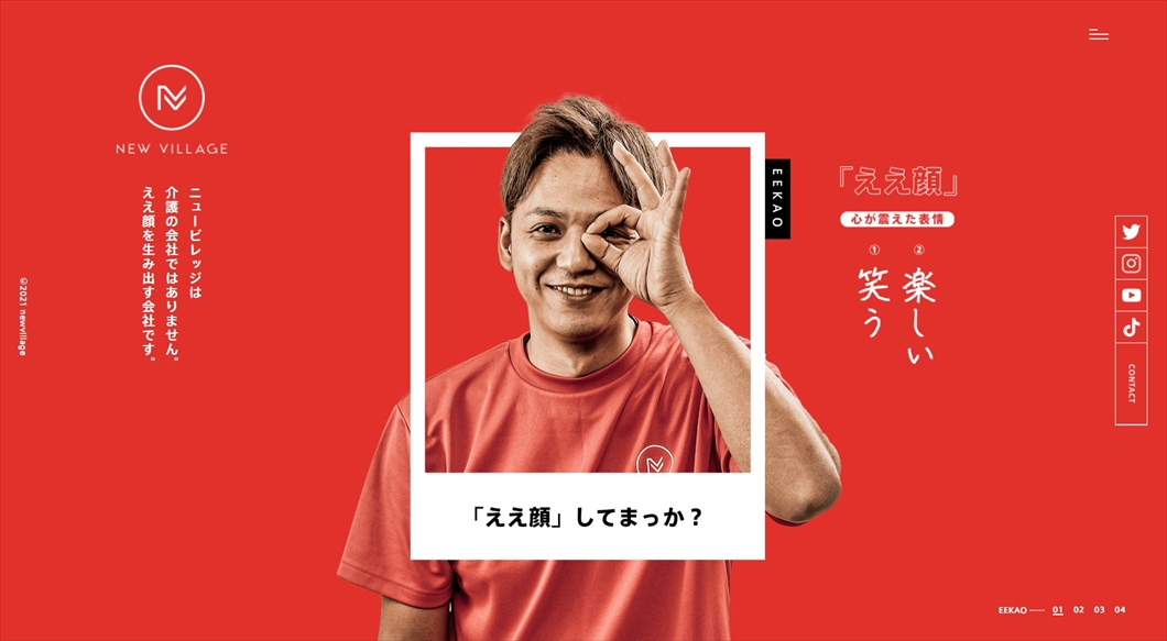 介護・福祉/リクルートサイト/カッコイイ/ダイナミック・躍動感/写真・動画/ホワイト/レッド/CMS/アジア