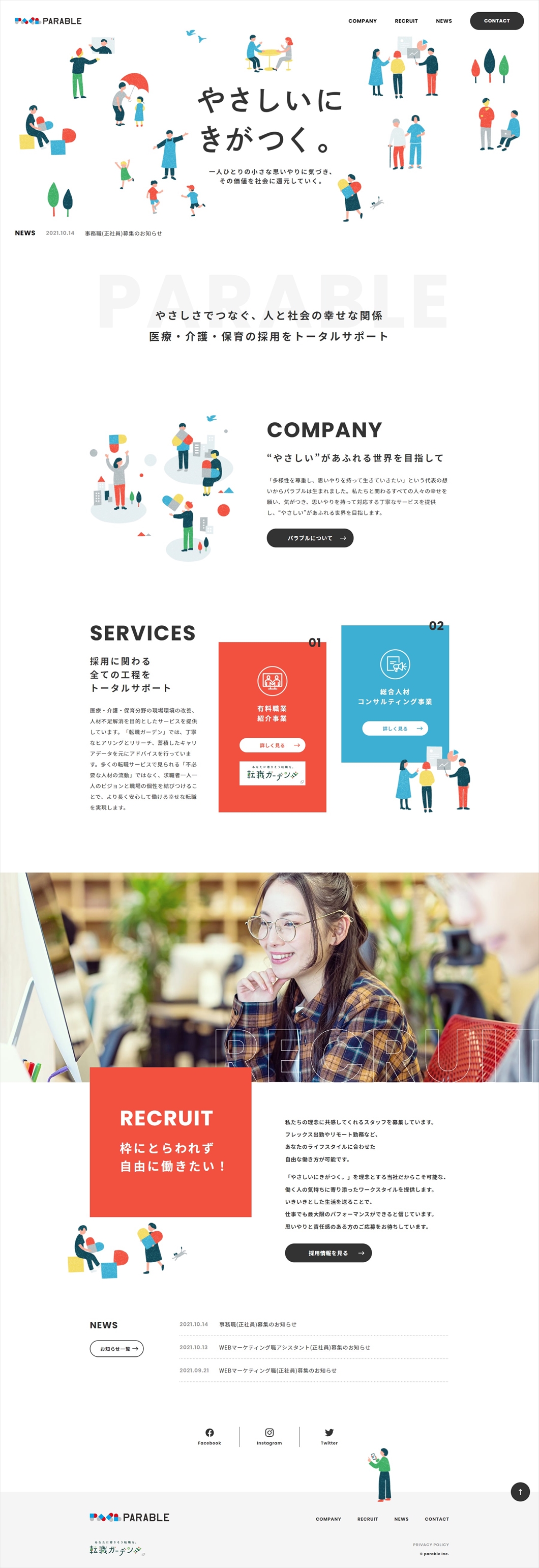 転職・採用・人材/コーポレートサイト/ナチュラル・ほっこり/ポップ/イラスト/カラフル/ホワイト/CMS/アジア