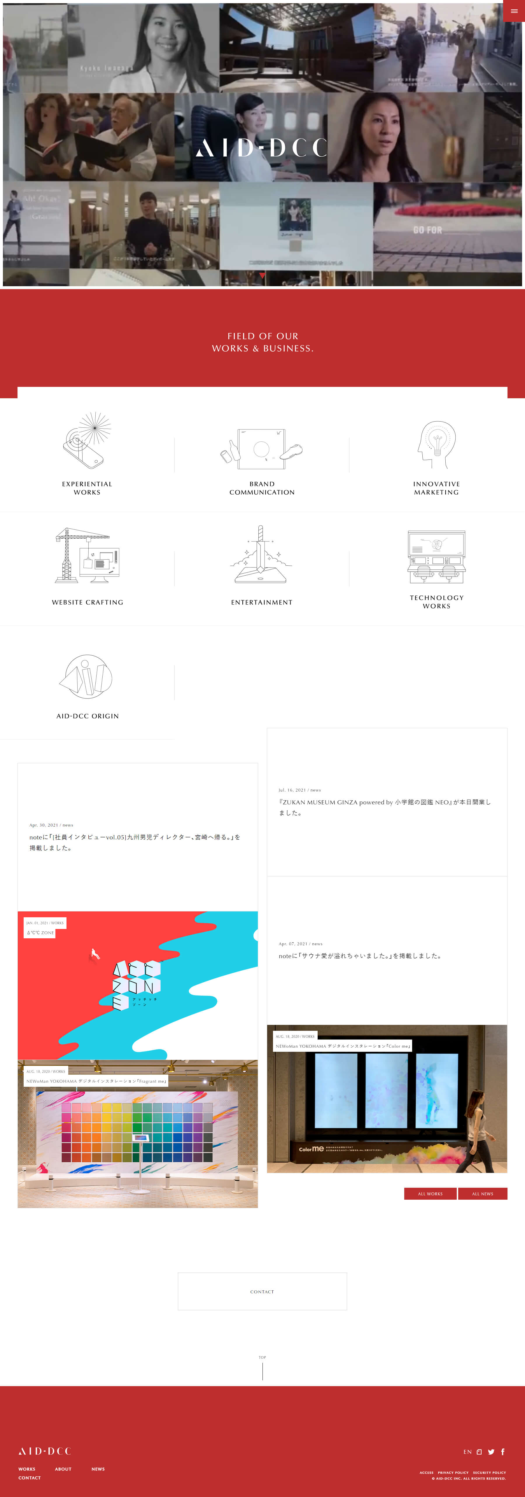 デザイン制作会社/コーポレートサイト/クール・シャープ/写真・動画/ピクトグラム/ホワイト/レッド/CMS/アジア