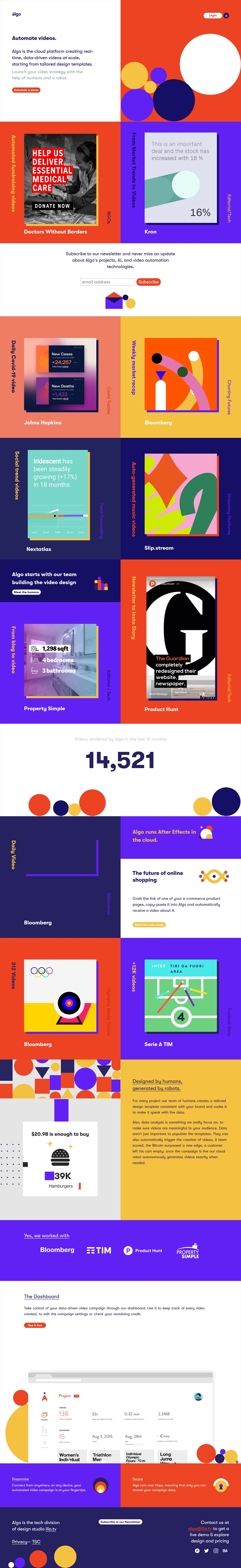 DESCRIPTION|Algo is the cloud platform creating real-time, data-driven videos at scale, starting from tailored design templates. Meet the Self-Driving videos. A tech division of design studio Illo.