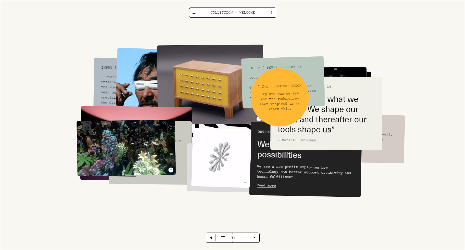DESCRIPTION|As a non-profit we bring psychologists, technologists, artists and creatives together to work on applied experiments and prototypes that uplift the human spirit.
