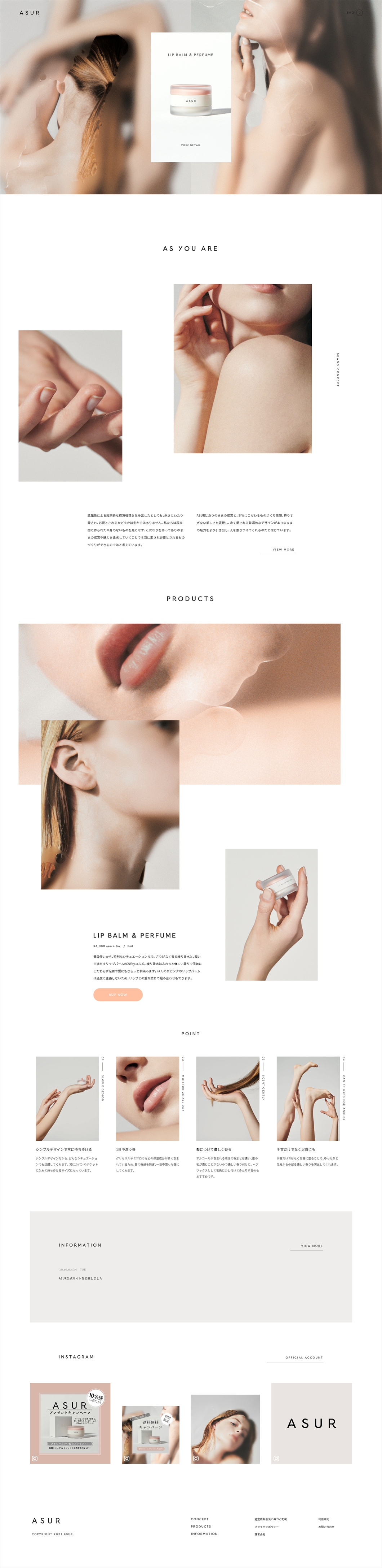 美容・健康/ブランディングサイト/シンプル/さわやか・透明感/写真・動画/ピンク/ホワイト/CMS/アジア