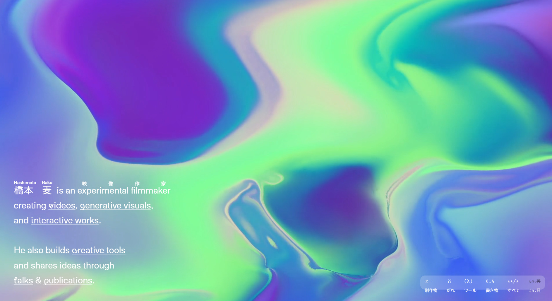 DESCRIPTION|橋本 Hashimoto 麦 Baku. is an experimental filmmaker 映像作家. creating videos, generative visuals, and interactive works.