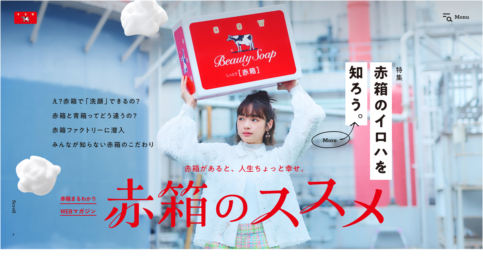 DESCRIPTION|やさしさにこだわって、もうすぐ100年を迎える、牛乳石鹸「赤箱」のWEBマガジンが創刊。みんなの知らない「赤箱」のこだわりや、「赤箱」の〝今〟 を牛乳石鹸がオススメしていきます。