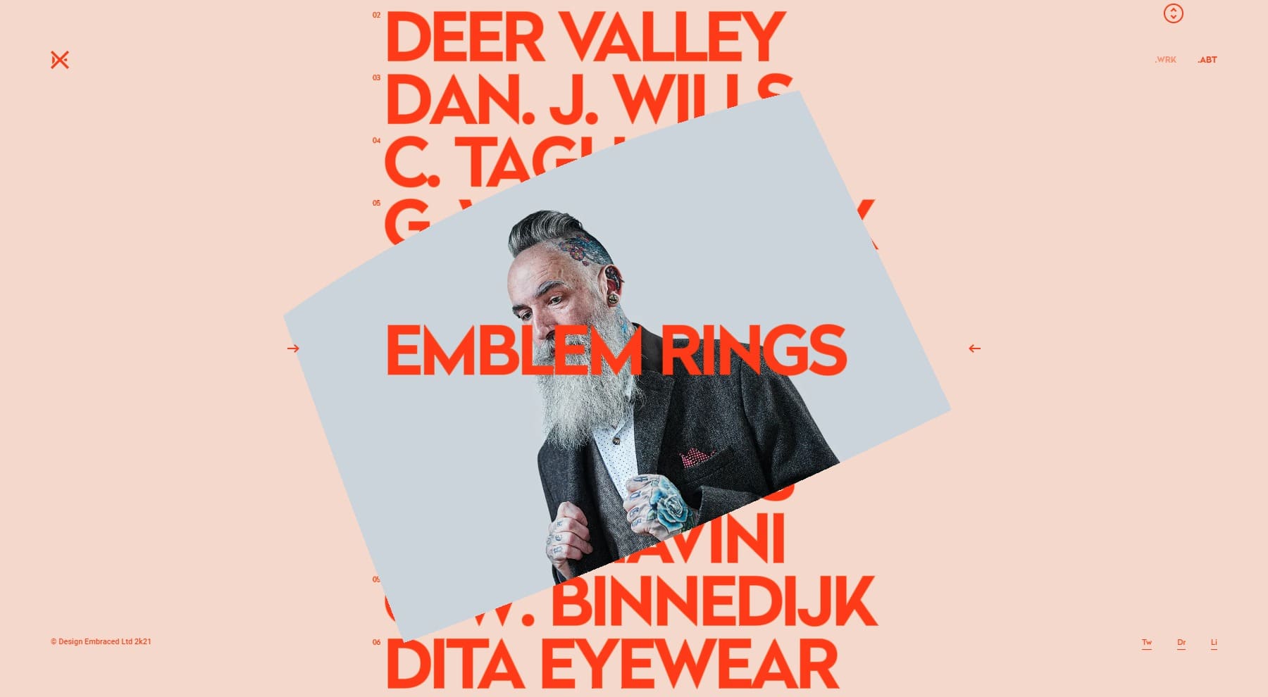 デザイン・アート/ポートフォリオ/シンプル/カッコイイ/タイポグラフィー/オレンジ/ピンク/CMS/ヨーロッパ