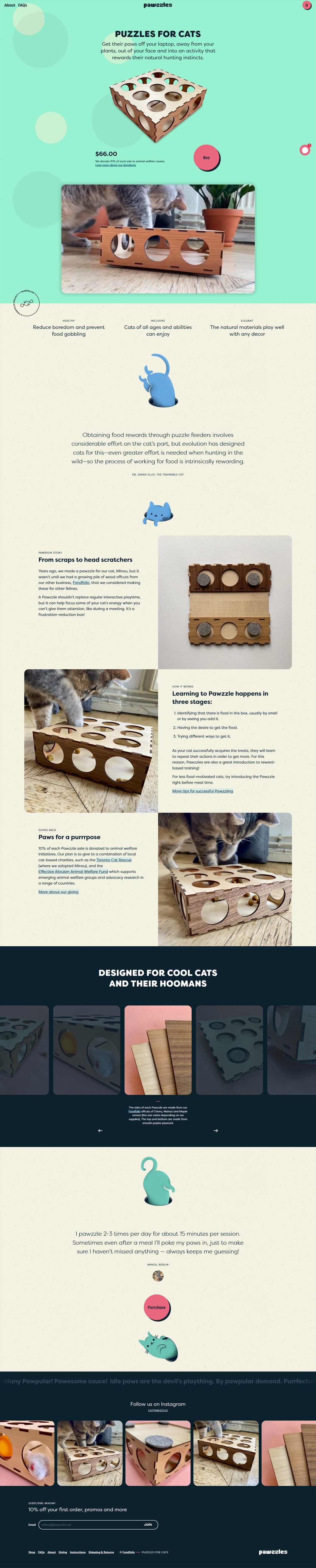 DESCRIPTION|Sometimes you need to focus and can’t give your cat the attention they are demanding from you right then and there. Pawzzles help get your cat’s paws off your laptop, away from your plants, out of your face and into an activity that rewards feline’s natural hunting instincts. Reduce boredom and prevent food guzzling.