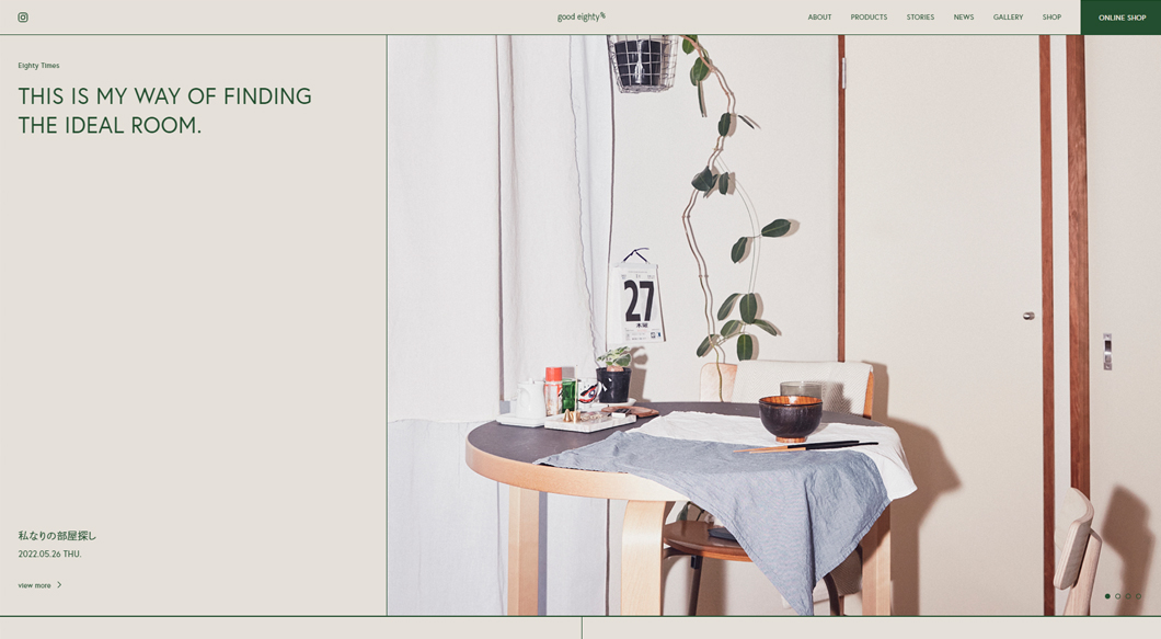 DESCRIPTION|移り変わっていくライフスタイルの中にいても、日々の暮らしはもっと楽しめる。100%ではなく、80%がいい。その余白に自分らしさという彩りを加えることで、“揺らぎ”さえもポジティブに捉えて過ごしていきたい。そんな想いから、good eighty%(グッドエイティーパーセント)は生まれました。