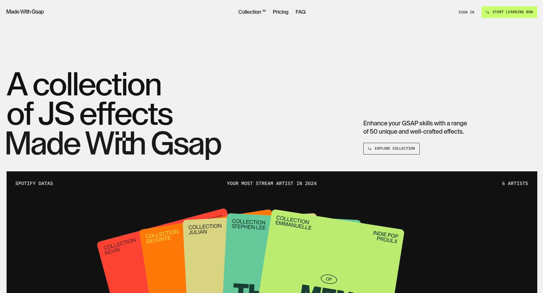 DESCRIPTION|A collection of 50 premium javascript effects made with GSAP.