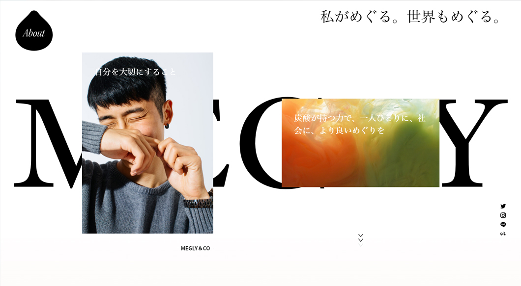 DESCRIPTION|MEGLY&CO(メグリーアンドコー)は炭酸セルフケアブランド『MEGLY』が運営するWEBメディアです。誰かと比べず、自分の悩みや希望と向き合い、心と身体を軽やかに、前へ。そうすることで、世界はもっと広がり、いろんなものが見えてくる。そんな「より良いめぐり」がうまれるきっかけを、お届けします。ぜひ、ゆっくりコンテンツをめぐってみてください。