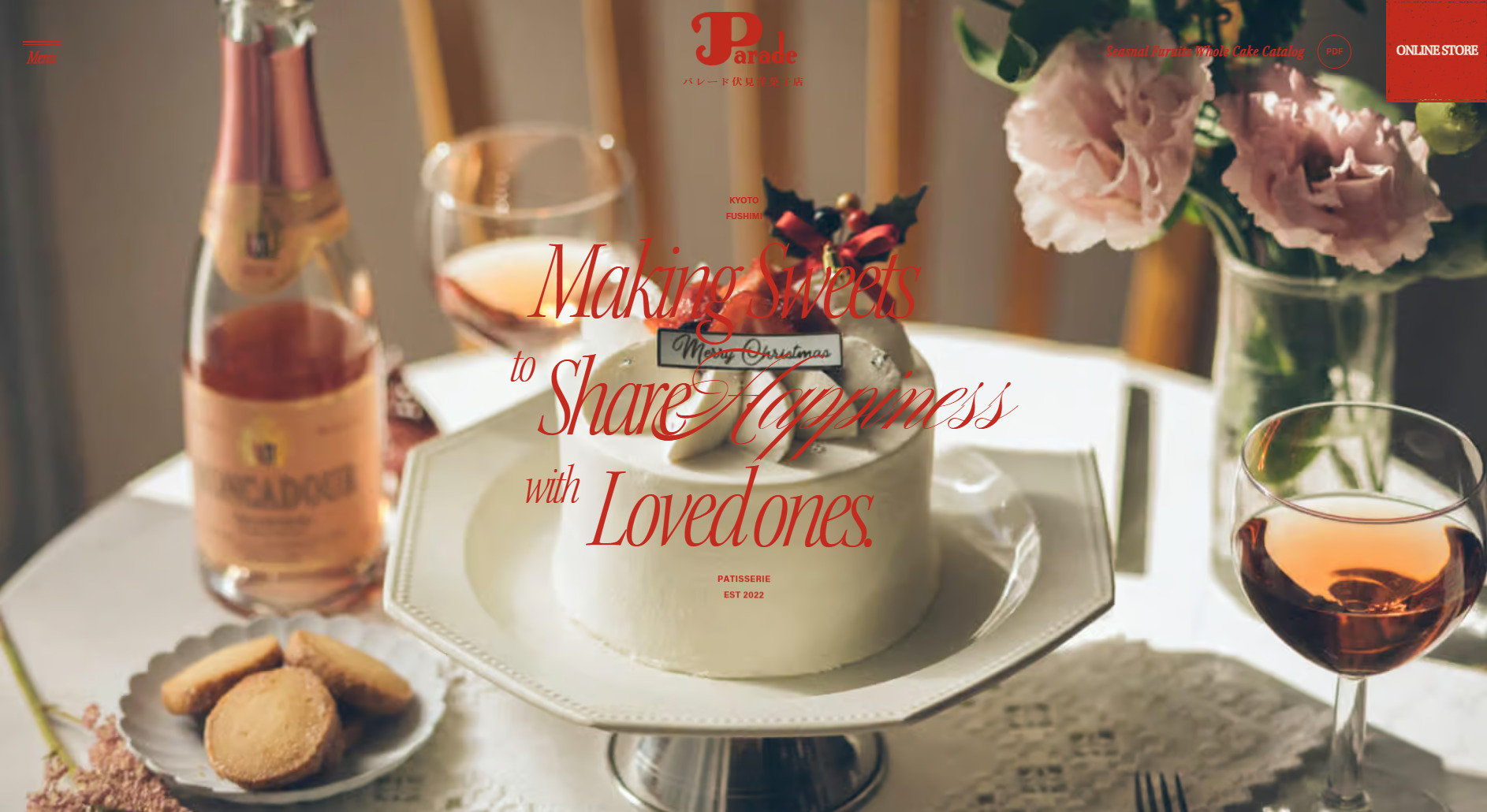 DESCRIPTION|京阪伏見桃山駅から徒歩4分、近鉄桃山御陵前駅から徒歩5分にある『カフェ&スイーツ Parade – パレード伏見洋菓子店』。国産素材やきび砂糖などこだわりの素材を使い一つ一つ丁寧に仕上げる焼き菓子やケーキを販売。テイクアウトからカフェでは厳選したトップグレードコーヒーや和紅茶をお楽しみいただけます。
