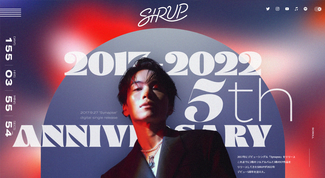 DESCRIPTION|SIRUPデビュー5周年を記念した特設サイト。2017〜2022年のリリースを振り返ります。