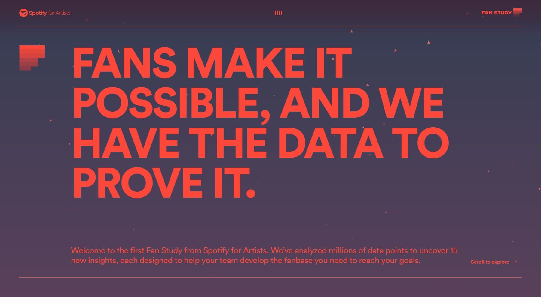 DESCRIPTION|Fans are the key to reaching your goals in music. The Spotify for Artists Fan Study turns our data into actions you can use to develop your fanbase.