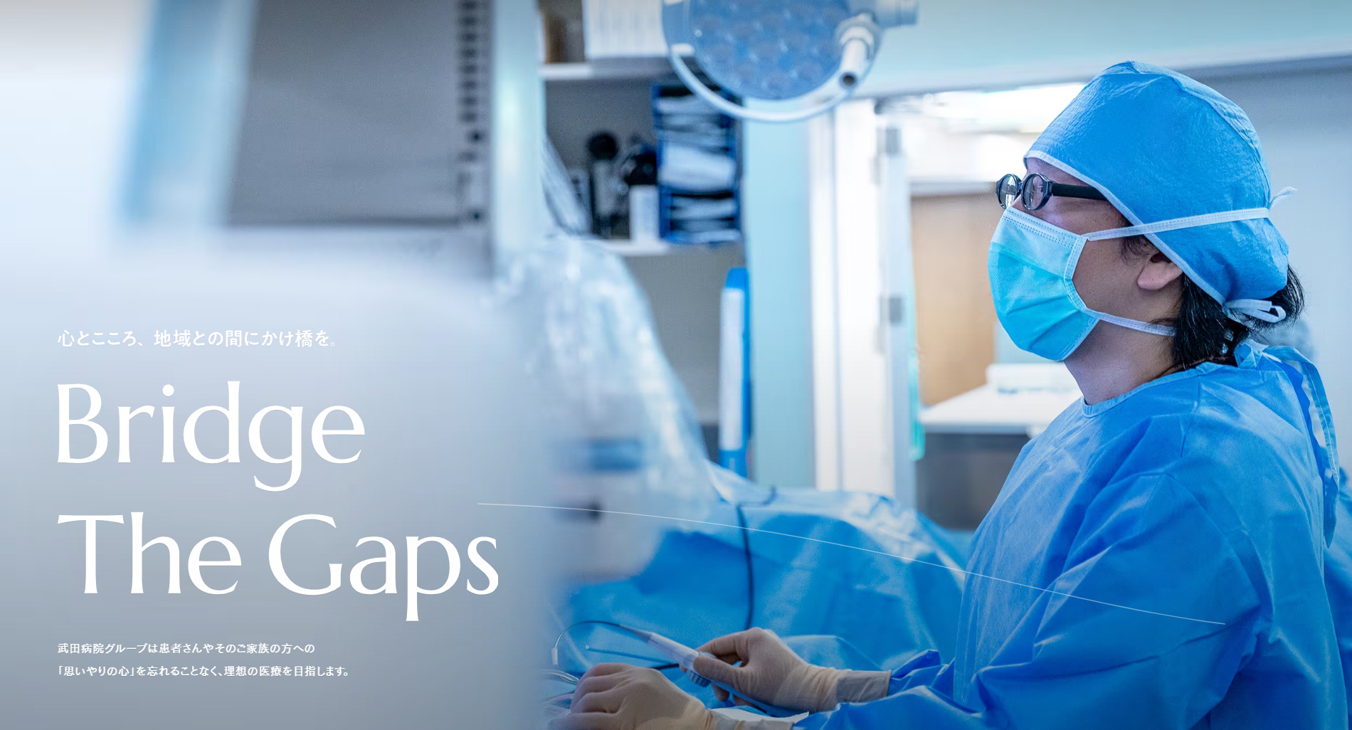 医療・病院/コーポレートサイト/信頼・安心/クール・シャープ/写真・動画/ブラウン/ブルー/ベージュ/CMS/アジア
