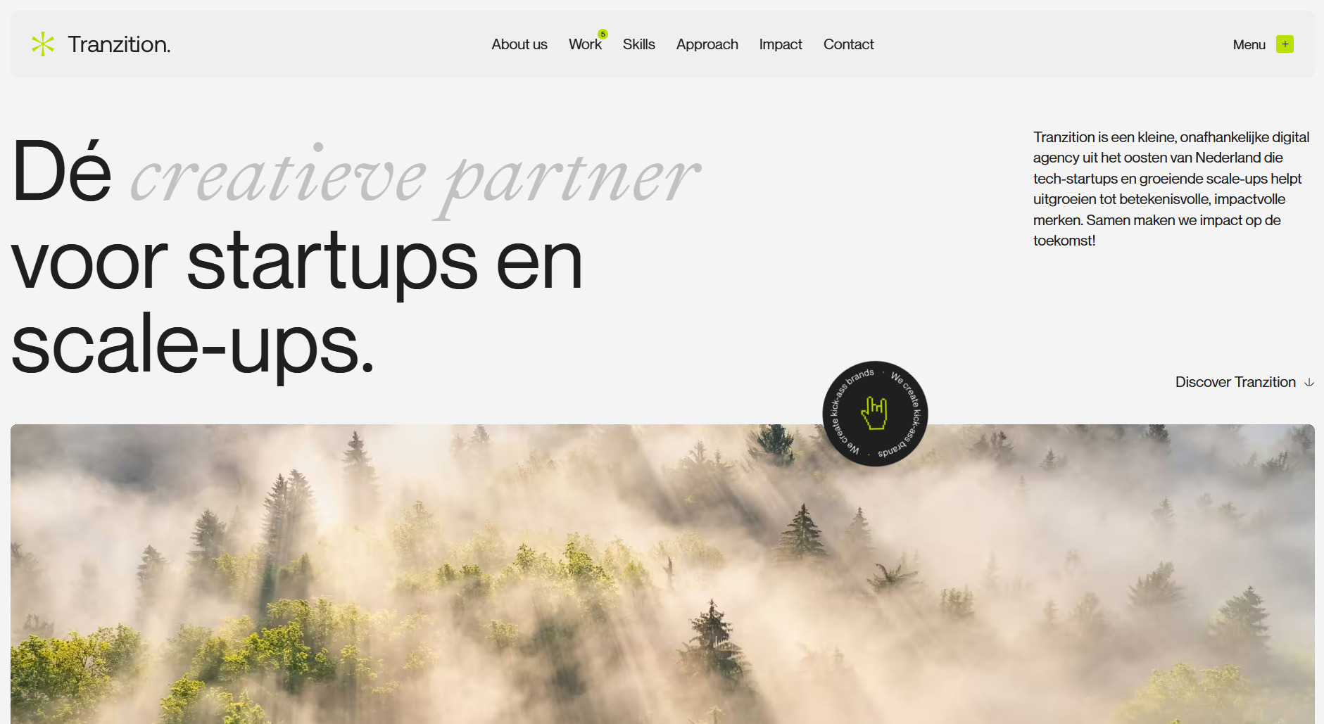 DESCRIPTION|Tranzition is een kleine, onafhankelijke digital agency uit het oosten van Nederland die tech-startups en groeiende scale-ups helpt uitgroeien tot betekenisvolle, impactvolle merken. Samen maken we impact op de toekomst!